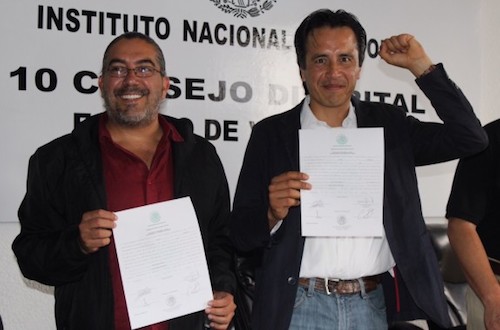 Cuitláhuac García recibió constancia de mayoría relativa como candidato electo por el distrito de Xalapa Urbano. Pidió confianza a la ciudadanía ya que con su partido, Morena, cumplirán los compromisos hechos en campaña.