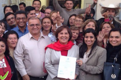 Noemí Guzmán, recibió de manos del vocal ejecutivo de la Junta Distrital Ejecutiva del INE en Coatepec, Gilberto Napoleón Tapia Granillo, la constancia de mayoría que la acredita como diputada federal electa por el noveno distrito.