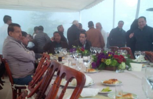 Arriba el presidente nacional del PRI, Manlio Fabio Beltrones al rancho “San Julián”, fue recibido por, el senador Pepe Yunes, y el gobernador Javier Duarte.