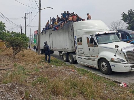 Localizan 300 migrantes dentro de la caja de un tráiler